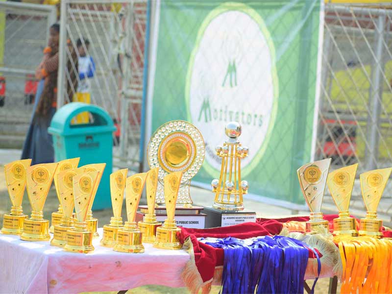 Grand and spectacular Annual Sports is held every year in the month of November which marks the culmination of all the sports events held throughout the year. Regular march past practices, practice for track and field events are done regularly all through the year. Prior to the annual sports, trials, and selections for each event are done and the Housemasters along with the P.E. teachers select the participants for various events. The sports meet begins with a grand march past followed by different track and field events. The participants score points for their houses, the houses are also marked for their march past, discipline and overall performance on the sports day. The winners are awarded Gold, Silver & Bronze medals and all these points put together along with inter-house event points are added to calculate the BEST HOUSE of the year.